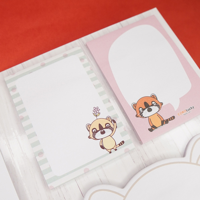 イラストが角に配置されたメモ帳と四角のふせんが💕