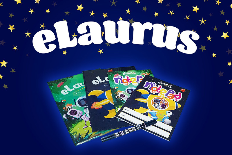 ポップな「eLaurus」の文字とキャラクターのイラストがプリントされています✨