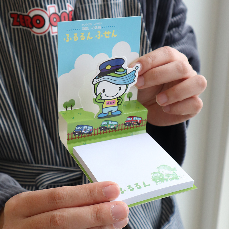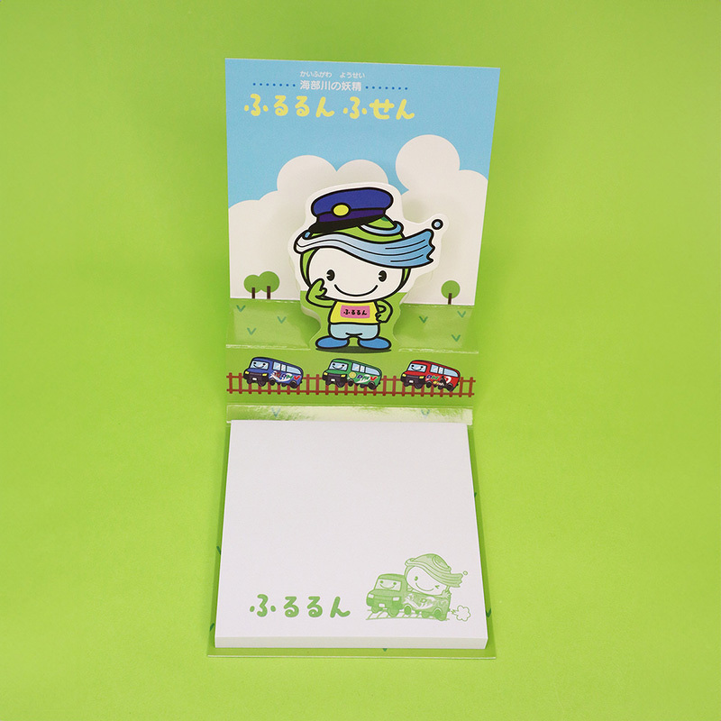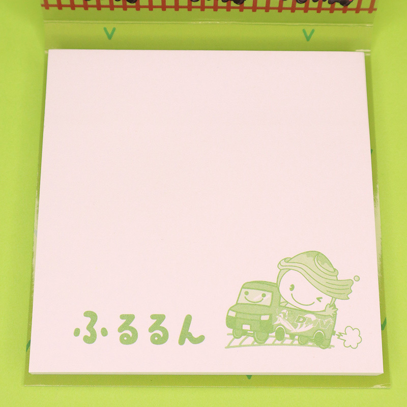ふせんの紙にはふるるんの文字とイラストがプリントされています。