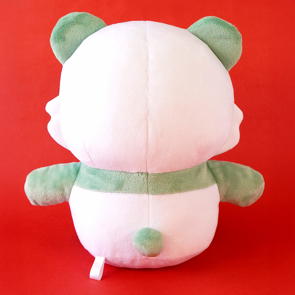 パンダらしい目の周りの模様はアップリケで再現されており、眉毛や可愛い垂れ目、お口、肉球は刺繍で制作されています🧵