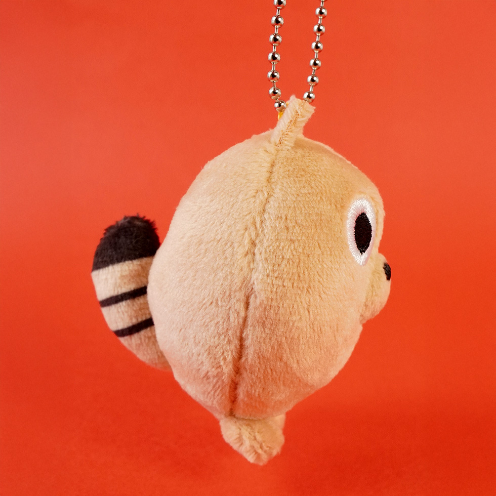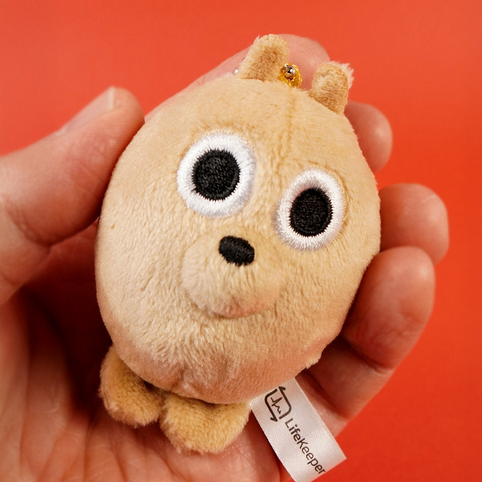 頭の上には着脱可能なボールチェーンが付いていて、ぬいぐるみストラップとなっています!
