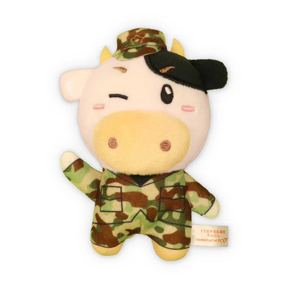 牛山さんは、自衛隊山口地方協力本部様で生まれたキャラクター。かわいいポージングとウインクが魅力的な、ボールチェーン付きミニぬいぐるみです。
