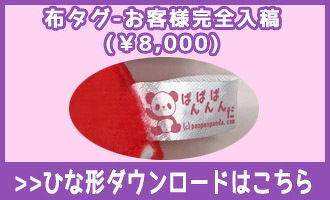 ぬいぐるみに布タグを縫いつけ、キャラクターの名前や企業名などをプリントするができます。
