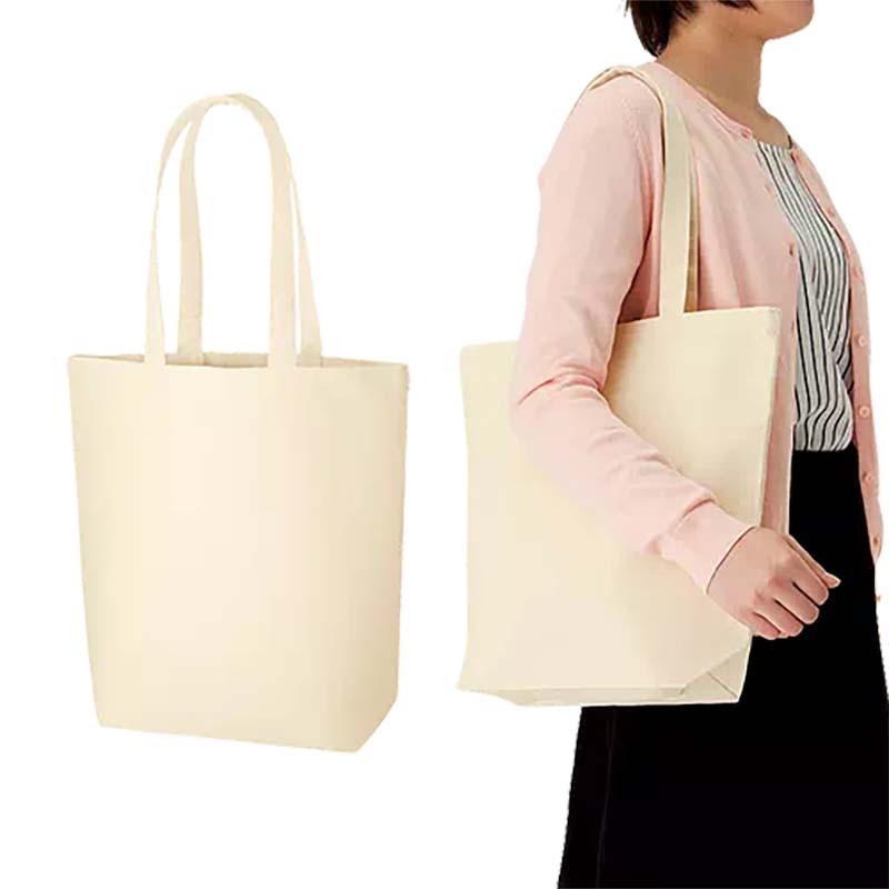 厚みのあるコットン生地のトートバッグです。A4サイズが収容可能でアーティスト物販や企業用ノベルティ、個人利用まで幅広い用途にご利用いただけます。肩かけ利用も可能です。エコバッグとしてもおすすめです。印刷方法も単色からフルカラー印刷まで対応しており、お好みのデザインでオリジナルトートバッグを作成出来ます。※エコマーク付