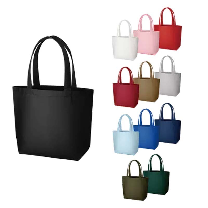 手で持ち運ぶには大きい雑誌やタブレット端末に適したトートバッグです。厚みもしっかりあり、小さく折りたたんでバッグに忍ばせれば、サブバッグとしても使い勝手の良いサイズです。本体色も12色展開でお好みの色を選べます。販路としてもノベルティや物販など、幅広い用途にご利用いただけます。印刷方法も単色からフルカラー印刷まで対応しており、お好みのデザインでオリジナルトートバッグを作成出来ます。