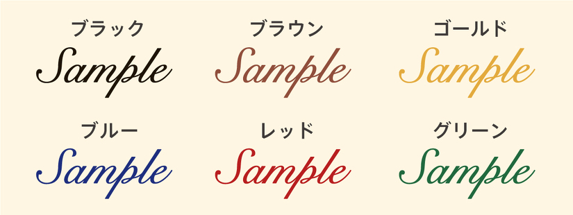 | 刺繍カラー | ブラック / ブラウン / ゴールド / ブルー / レッド / グリーン |